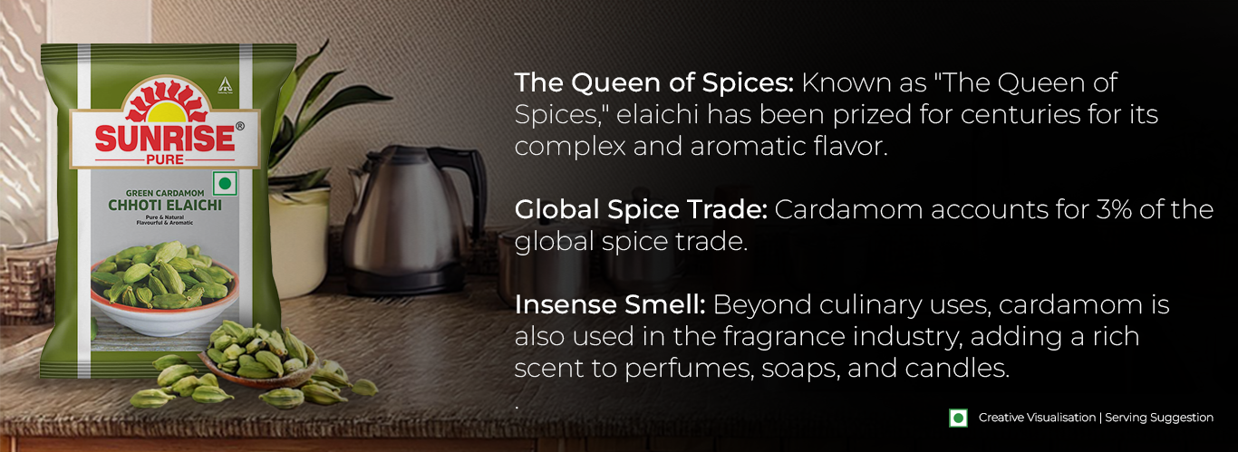 Sunrise Chhoti Elaichi adds a touch of luxury with its fragrant, sweet-spicy flavour. Widely used in desserts, teas, and biryanis, this premium spice uplifts both aroma and taste, making every dish feel special and festive.