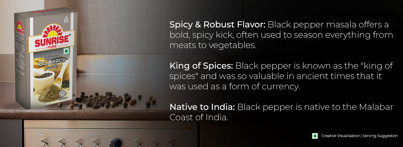 Sunrise ground black pepper delivers a punchy pungency and distinctive flavour, adding preferred heat to your dishes. The sharp, penetrating aroma conjures memories of family gatherings and comforting meals, evoking nostalgia in every bite. Sunrise's ground black pepper powder is a beloved kitchen staple that adds depth and warmth to every dish, connecting generations through its timeless essence.