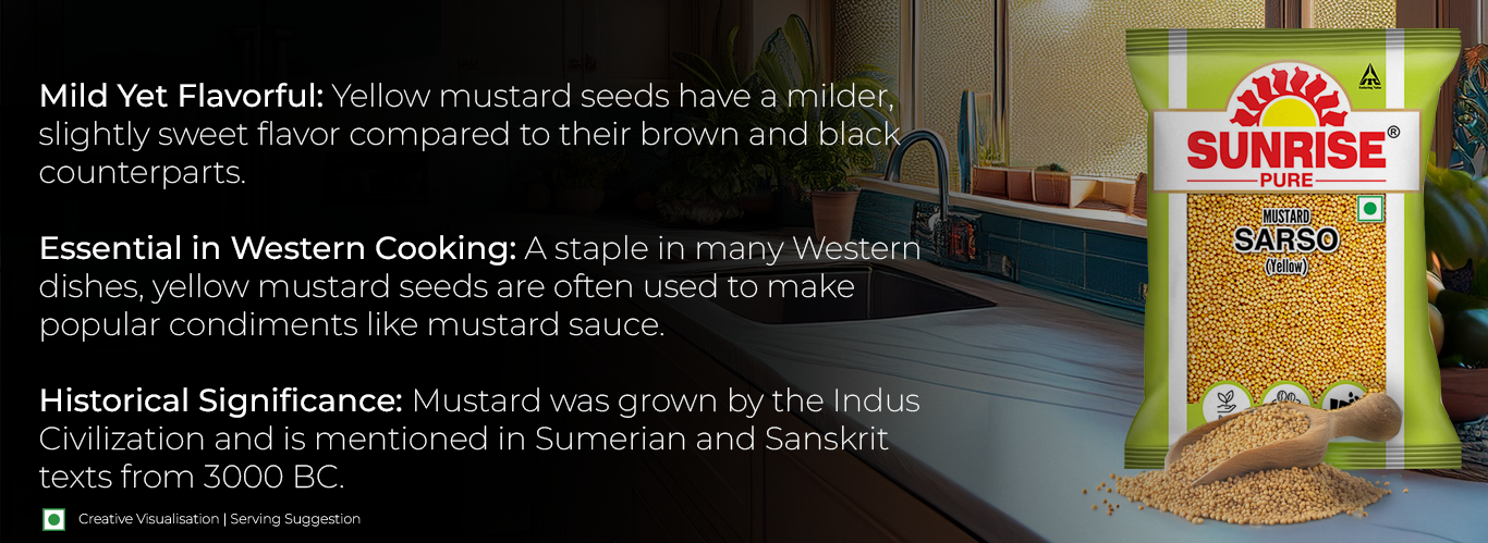 Sunrise Sarso Yellow delivers a sharp, tangy flavour perfect for pickles, curries, and marinades. A staple in East Indian kitchens, it’s especially popular in mustard-based gravies and fish preparations. Its bold essence brings out the best in rustic dishes.